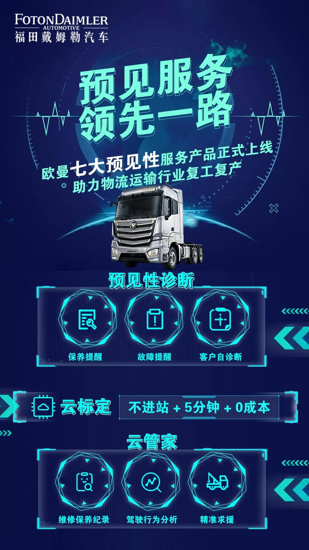 福田戴姆勒汽车积极响应抗疫部署推动物流行业复工复产的同时,避免聚众性疫情传播风险,推出欧曼重卡7大预见性服务,为广大欧曼用户提供更优质的线上服务