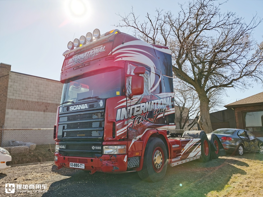 这辆车的车身涂装别具一格,上面写着INTERNATIONAL Trucking,意思是国际货运。如此闪耀的涂装,在国内除了吸引爱好者的眼球之外或许偶尔还会破财消个灾。