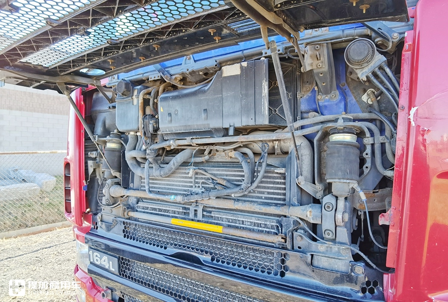 因为发动机包围性太强,所以只能拍油底壳,由于从欧三开始DC16发动机都不带油底壳散热片,所以可以很确定的判断这辆车是欧二排放的DC16 580发动机。