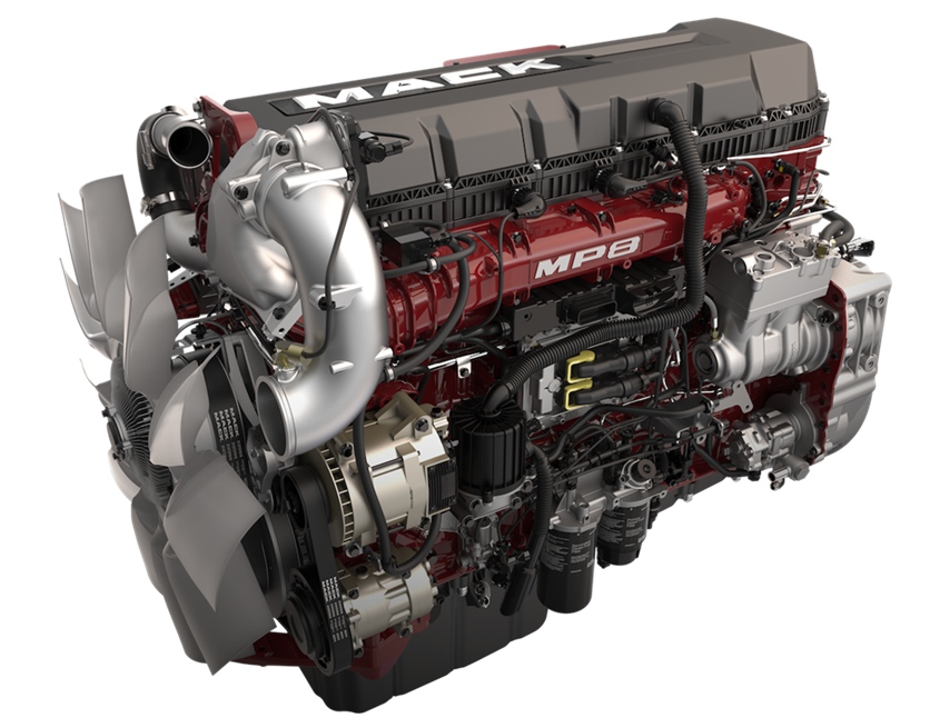 马克MP7是基于沃尔沃D11发动机优化的机型,排量11升,发动机缸径x行程与沃尔沃D11一样,都是123x152mm,MP7在美国组装,马克特意强调了这一点。作为一款11升发动机,高功率和轻量化是它最大的特点。功率覆盖范围325-425马力,功率调校没有欧洲卡车那么激进,最大扭矩2110Nm(1560 lb-ft)。