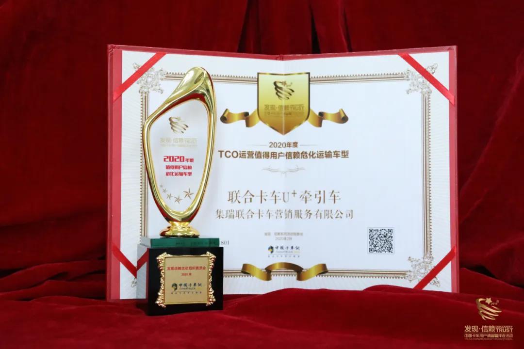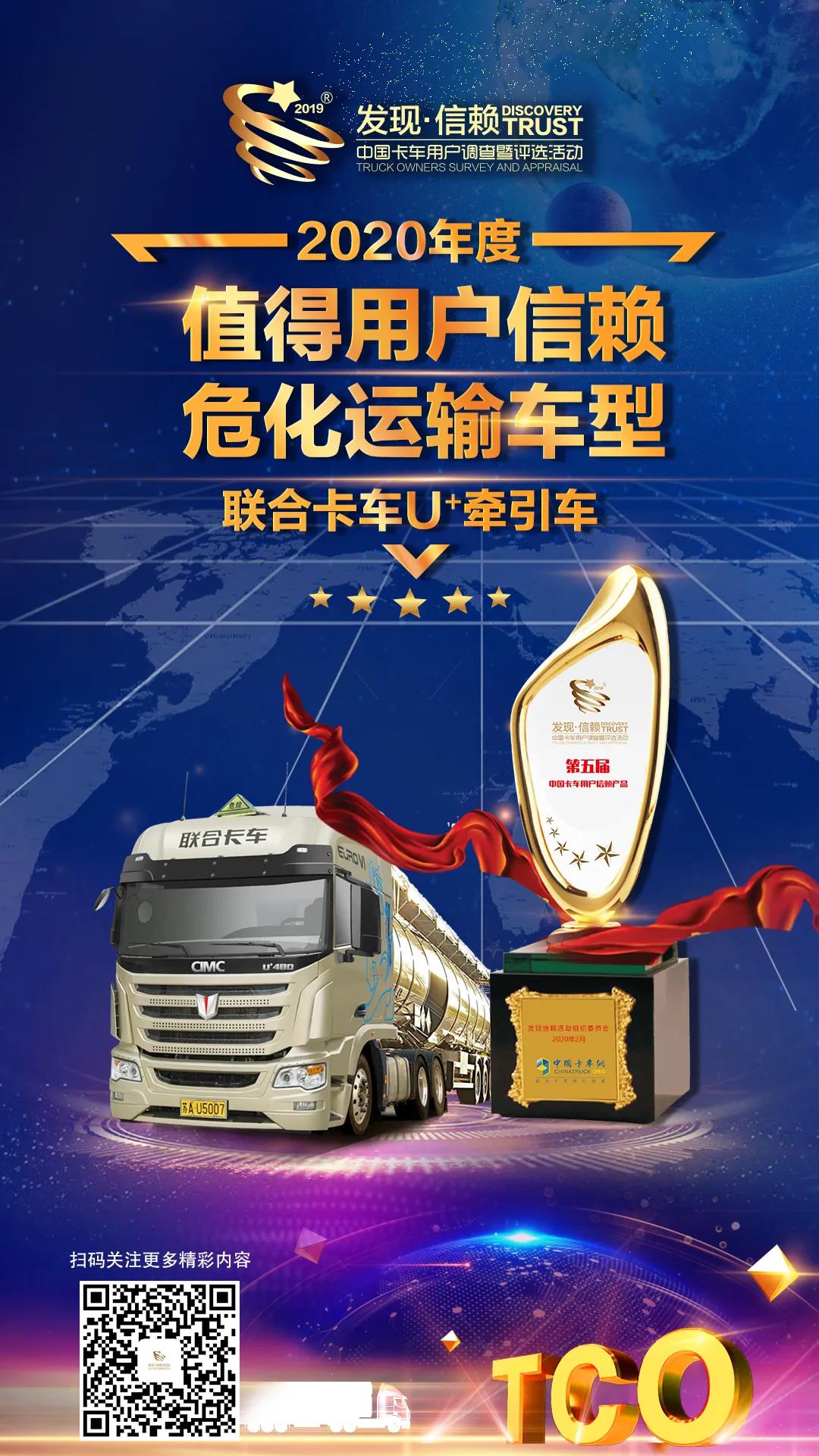 3月20日,在第五届“发现信赖”中国卡车用户调查暨评选活动中,联合卡车U+牵引车因用户推举而荣获“2020年度TCO营运值得用户信赖危化运输车型”奖项。(TCO为“全生命周期”)