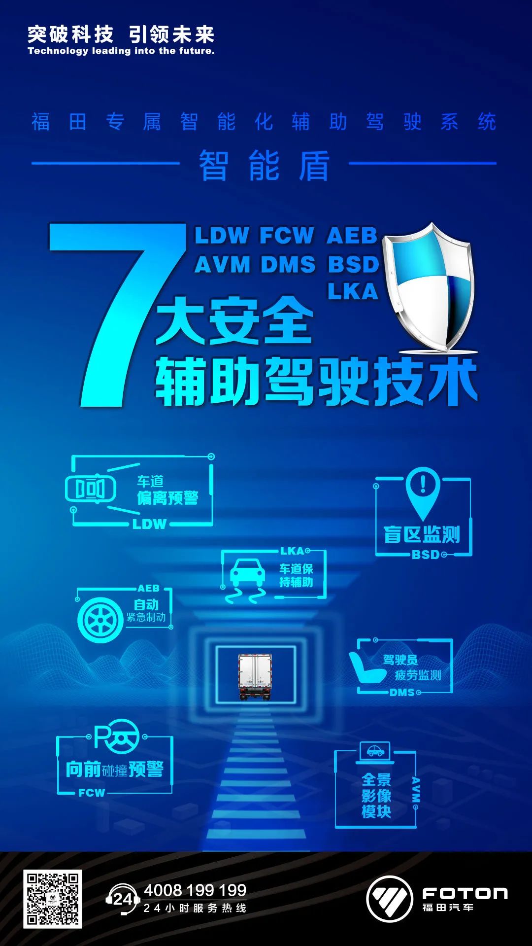 道路千万条,安全第一条,福田汽车以高等级智能科技助推公路运输安全升级,七大安全辅助驾驶技术构成福田专属智能化辅助驾驶系统