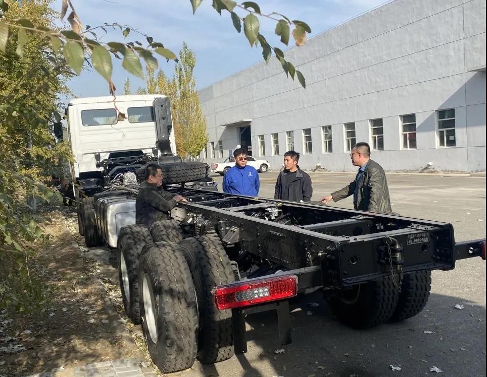 为了能更好契合改装工作,缩短产品改装周期,加快产品融合度,营销公司特邀行业标杆企业烟台杰瑞、华信石油装备等上装企业,与技术中心现场对接、沟通,在此期间上装企业结合自身改装经验,提出宝贵的改进建议,最终,给予该底盘高度认可。这也为后续车辆批量生产、快速进入市场做好准备。