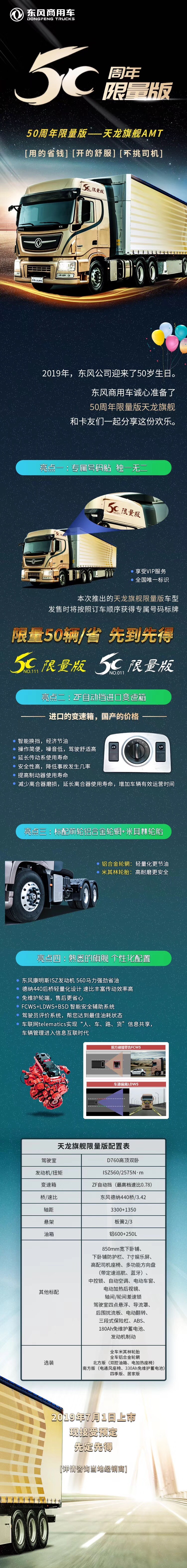 四大亮点,50周年限量版天龙旗舰AMT即将上市,先定先得! 编辑张靖 新车资讯2019年6月21日 11:2116.50W0 东风商用车(787)东风天龙(195)本文来源东风商用车,经授权后由编辑张靖发布,观点不代表提加商用车网的立场,转载请联系原作者。编辑张靖提加商用车小编,还请大家多指教!6.22K936.33M39.62W