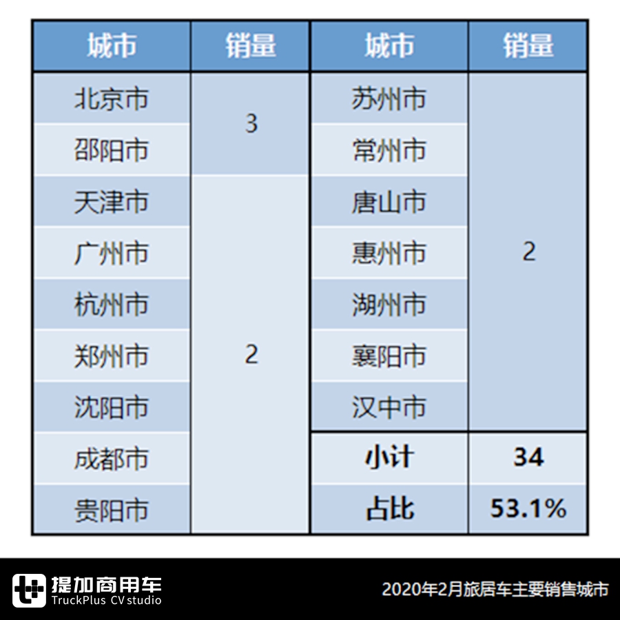 从销往目标城市来看,由于旅居车的个人消费属性,导致车辆可能分布在各个地方,不会体现公交或出租等公共交通用车的明显集聚性,因此分散化、去中心化也是旅居车的一大特征。总体来看,销售大于1辆的前16个城市小计有34辆,整体占比53.1%,集中度不够高,市场依然存在明显的分散特征。