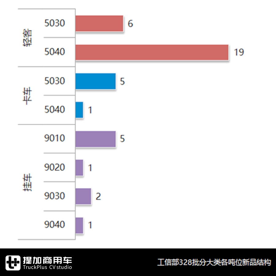 从旅居车辆分大类的吨位分布看,轻客类新品主要集中在5040级,即欧系轻客领域,达到19款、占比约半数。其余数量较多的有:轻客5030级的6款,主要是新全顺V362;卡车5030级的5款,主要是4款皮卡类车型;以及挂车9010级的5款。