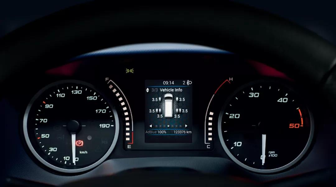 实时胎压监测系统,实时提供轮胎数据,确保车辆在最佳胎压下工作。