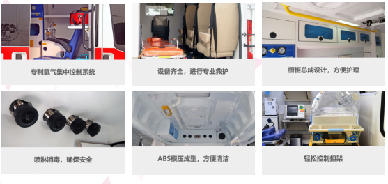江铃救护车系列不仅涵盖了城际或临距跨省的病人转运和过程监护(监护型救护车、福星III型救护车);抢救及监护伤病员(福星IIH型救护车);院前抢救、转运和监护普通/危重伤病员(福星VI型救护车);院前抢救、转运和监护传染病员(全隔离半感染救护车);城际或临距跨省的孕妇和婴儿的转运和过程监护(新生儿转运型救护车)等多种医疗救助场景,而且车辆还配备了人性化、专业的医疗设备。