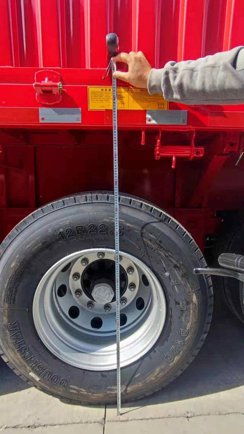 以目前华兴车辆5.8吨行业最轻侧翻自卸半挂为例,华兴侧翻自卸半挂重心最低可以做到1.45米,而行业其他竞品重心在1.5-1.7米左右。到底有没有1.45米呢?为了确保本次测试的真实性,我们本次采访不打招呼随机来到了华兴车辆停车场。