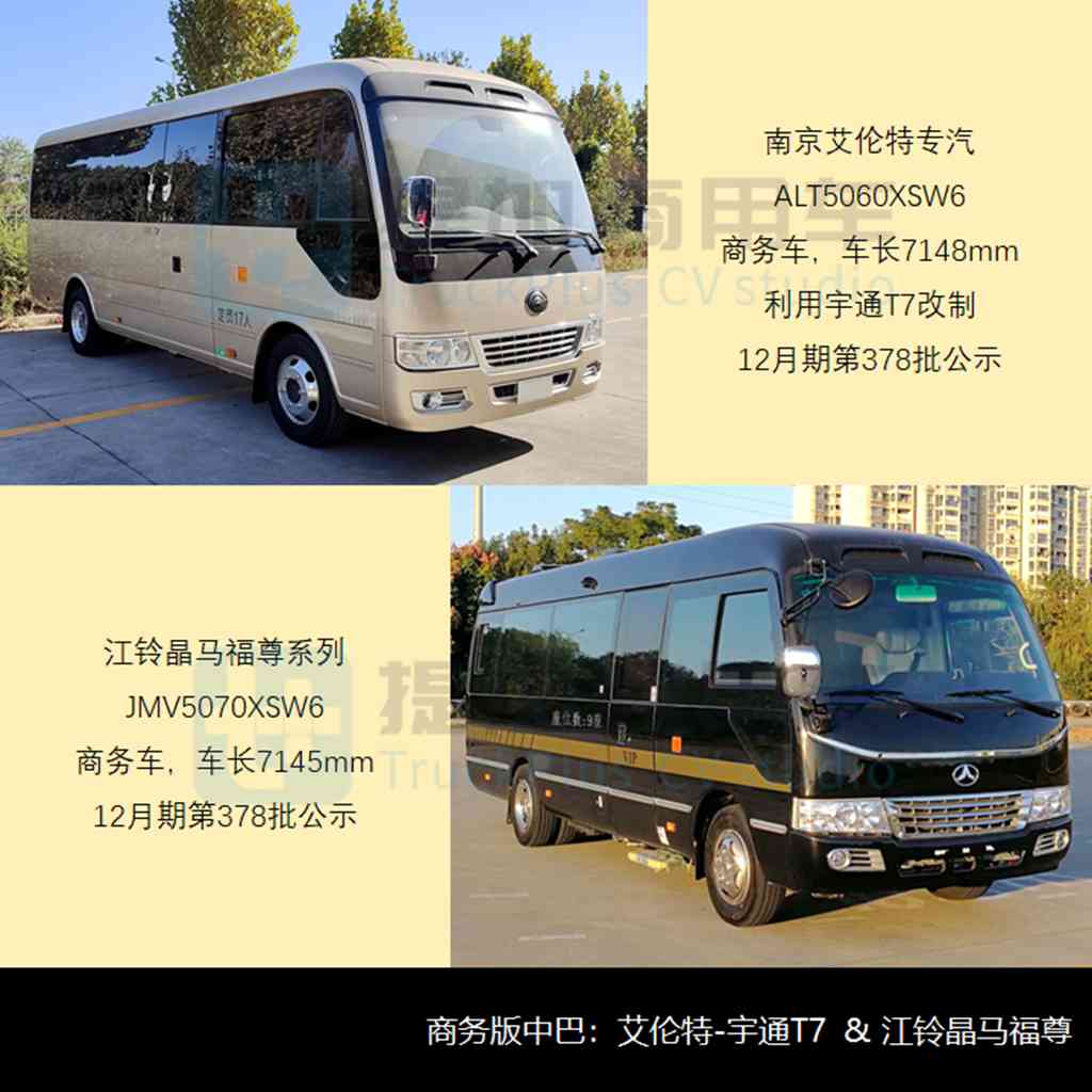 - 南京艾伦特专汽12月期第378批公示申报了ALT5060XSW6商务车,利用宇通T7改制,车长7148mm,额定载客17座,有物理隔断、连通门和影音系统,可选多种款式的办公桌和车载电视。该车匹配福特3.5L、313/320马力汽油机,最高130km/h,油耗16L/100km。从同类车型而言,历经多年打磨的宇通T7堪称国产商务中巴的顶流存在。