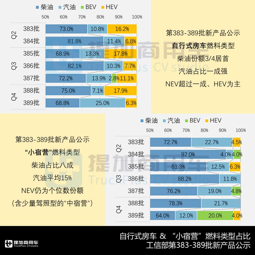 对近半年的自行式房车和“小宿营”新品进行燃料类型的监测。