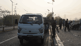 凌晨4点半,飞碟汽车已出现在赛事现场上,投入忙碌的运输工作;飞碟汽车将赛包、水等补给用品以及帐篷、桌子等赛事物资运送至赛事现场各个补给站;将赛事现场布置所需的大量赛道挡板、道旗、配重等赛场物资运抵赛事现场各处。